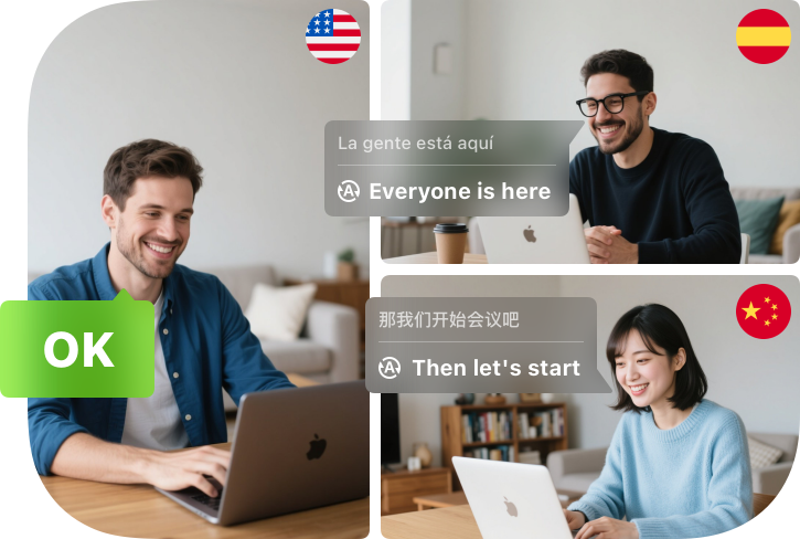 Get real-time captions translated into 20+ languages with low latency and high accuracy.