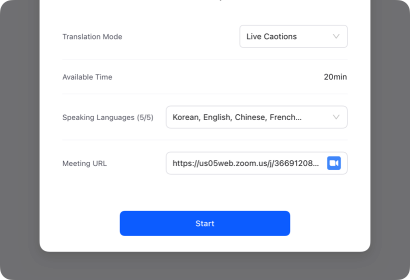 Easily paste your meeting link, and get a real-time translation link to share with others.